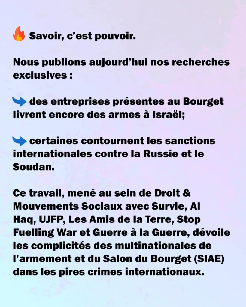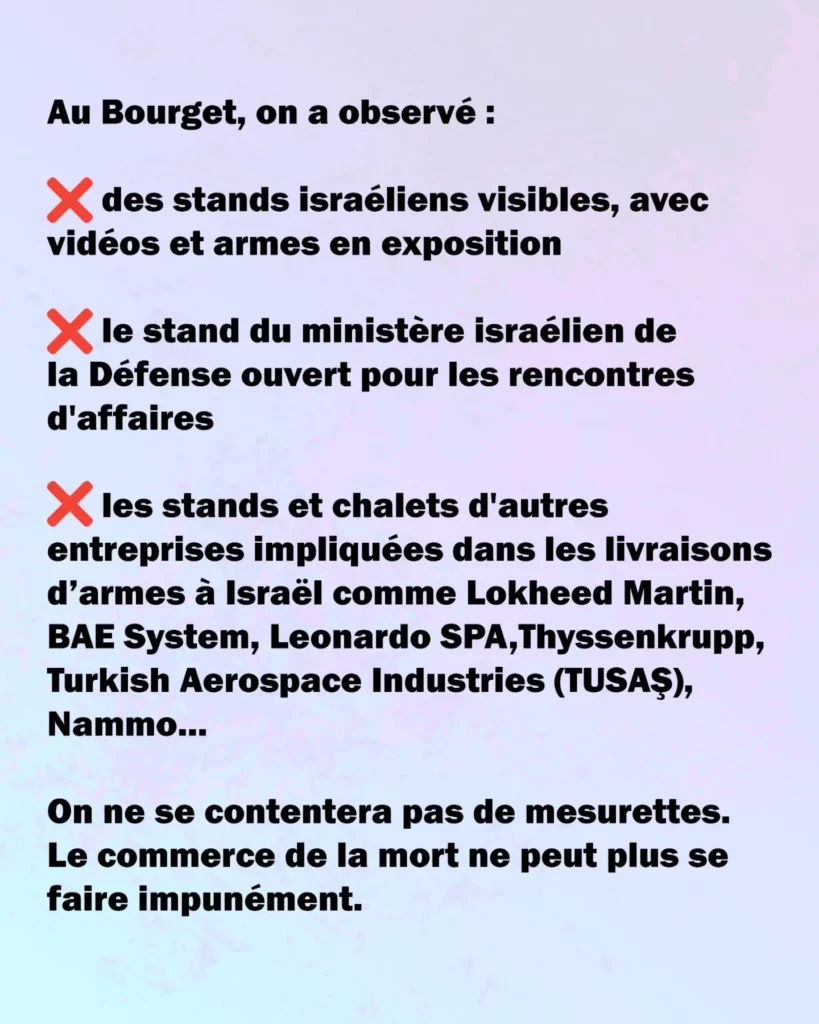 ➡️ des entreprises présentes au Bourget livrent encore des armes à Israël;
