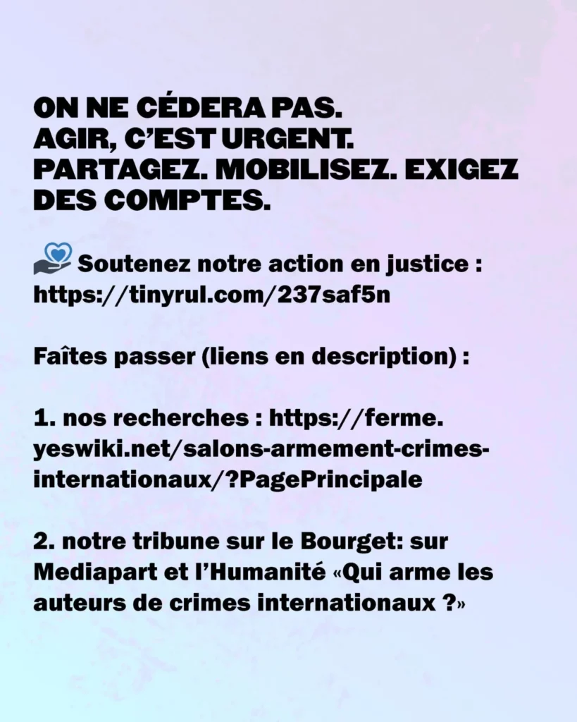 2. notre tribune sur le Bourget: sur Mediapart et l’Humanité « Qui arme les auteurs de crimes internationaux ? » https://tinyurl.com/4akt3bv3