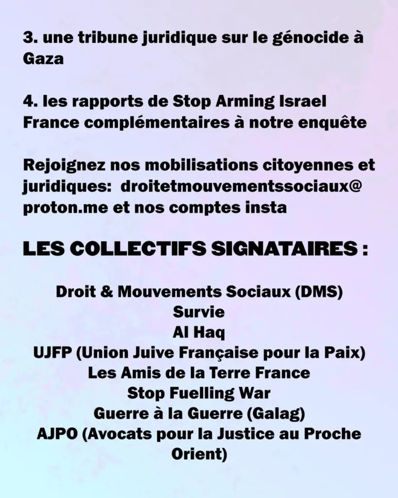 4. les rapports de SAIF complémentaires à notre enquête: https://padlet.com/stoparmingisraelfrance/ressources
