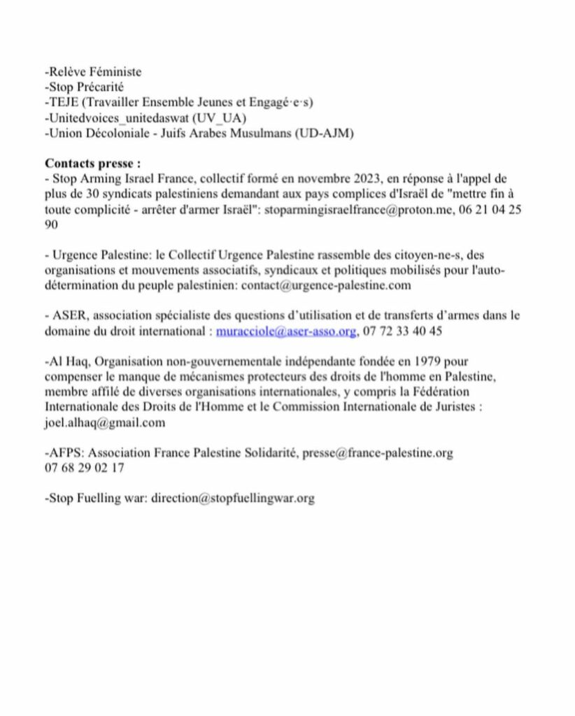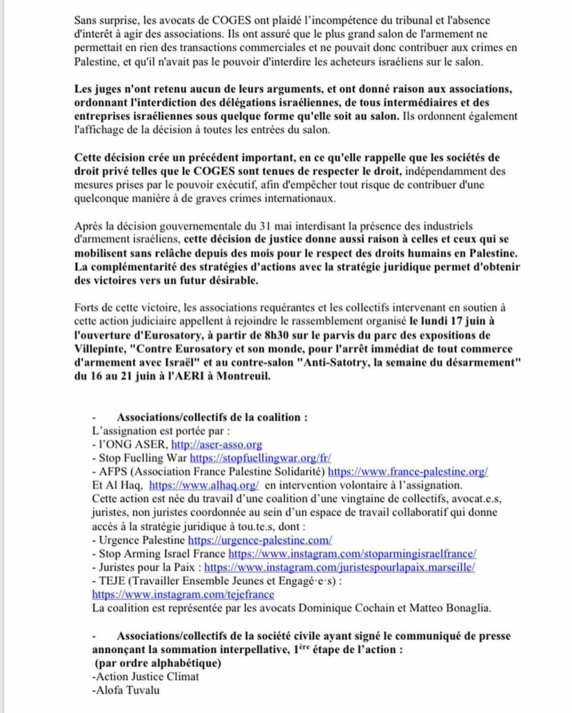 Le Tribunal judiciaire de Bobigny a accueilli les principales demandes de @al_haq_organization, @stoparmingisraelfrance, @afps.officiel, @urgencepalestine, @juristespourlapaix.marseille, @tejefrance, @stopfuellingwar et l’ONG Aser.