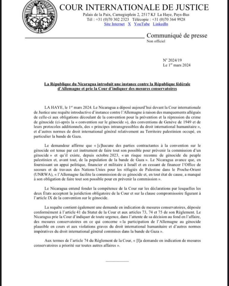 1er mars 2024 Aujourd’hui, le Nicaragua a introduit une instance...