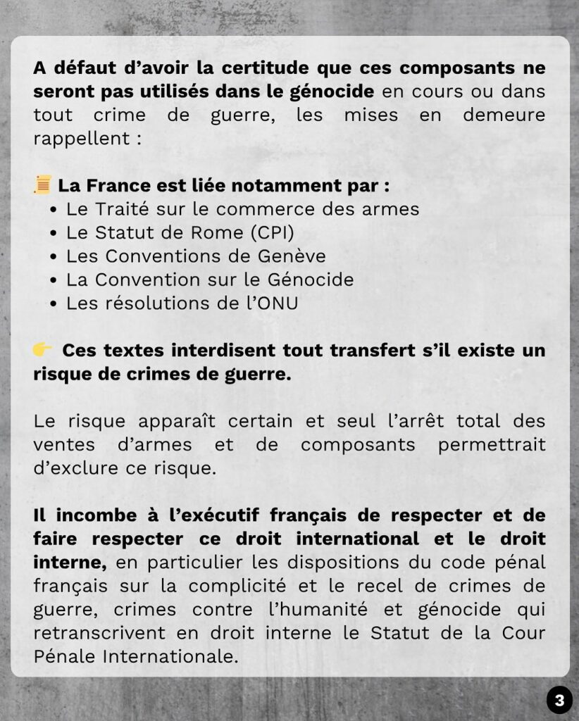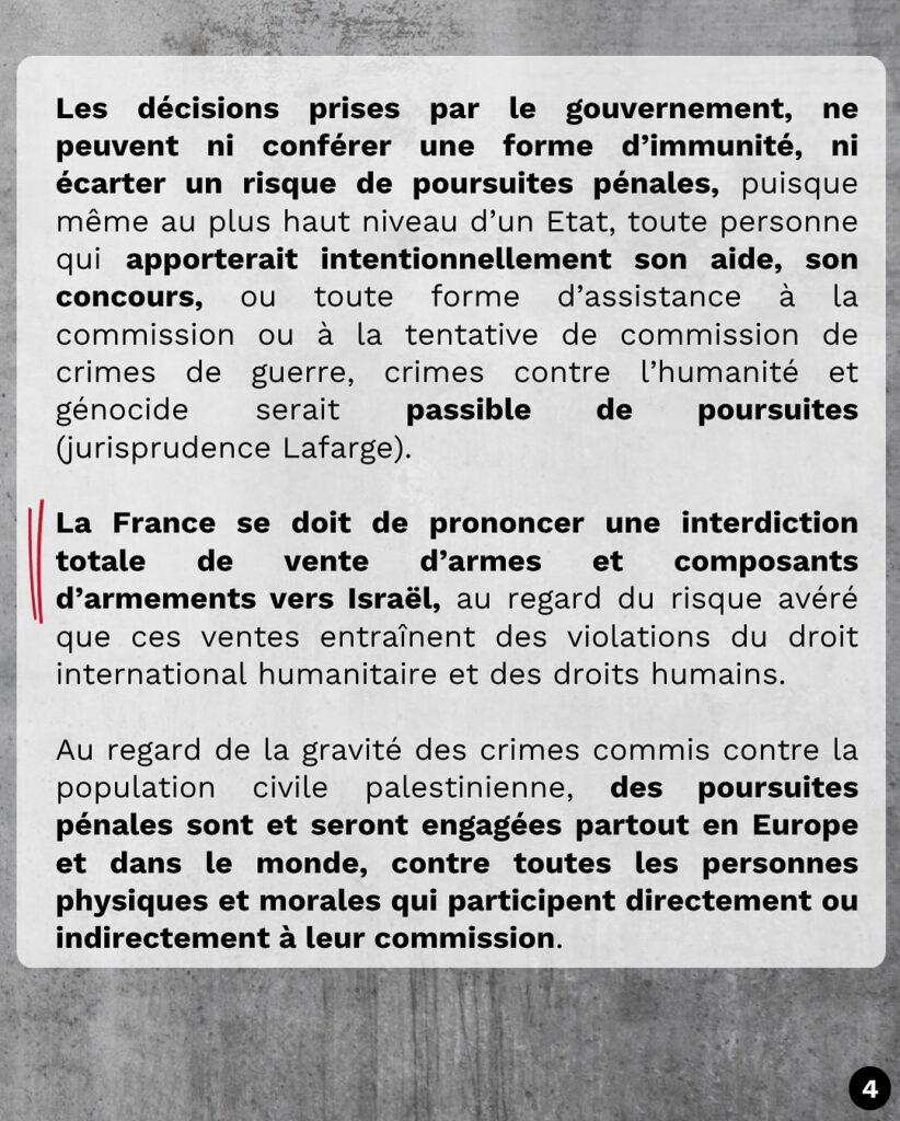 La France doit interdire que des armes ou du matériel destiné à l’armement soit livrés à l’occupant génocidaire !
