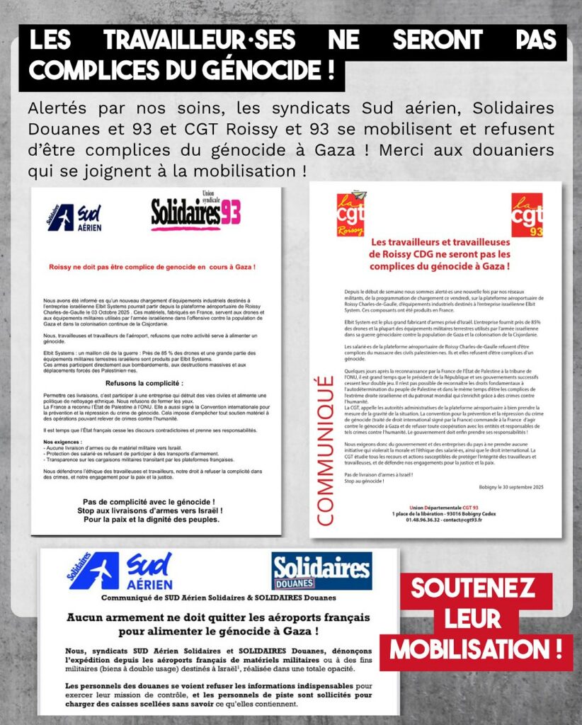 La mobilisation s’organise pour empêcher cela, au niveau juridique mais également via les travailleurs·es de Roissy qui refusent d’être complices du génocide !
